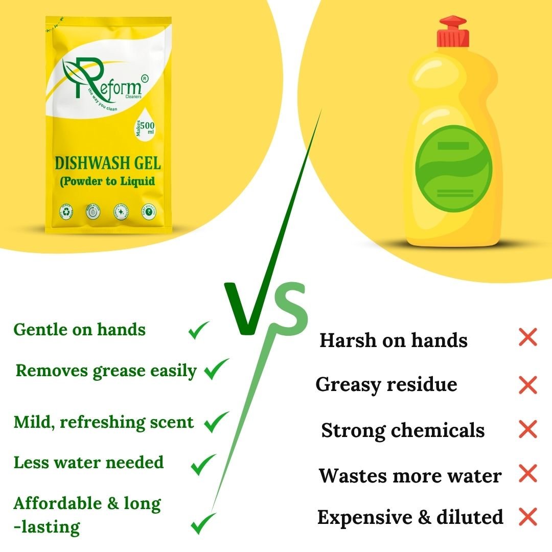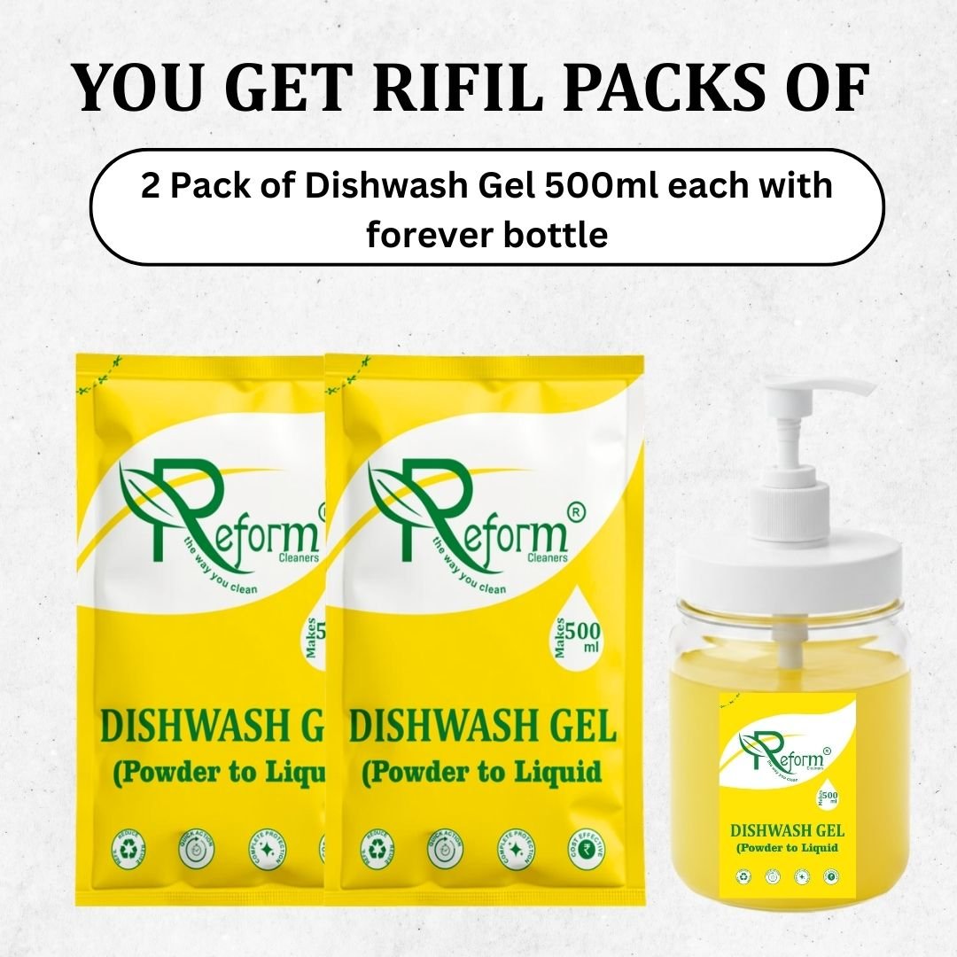 Why Choose Reform Dishwash Gel (Powder to Liquid): Dishwash gel Pack of 2 With Forever Bottle