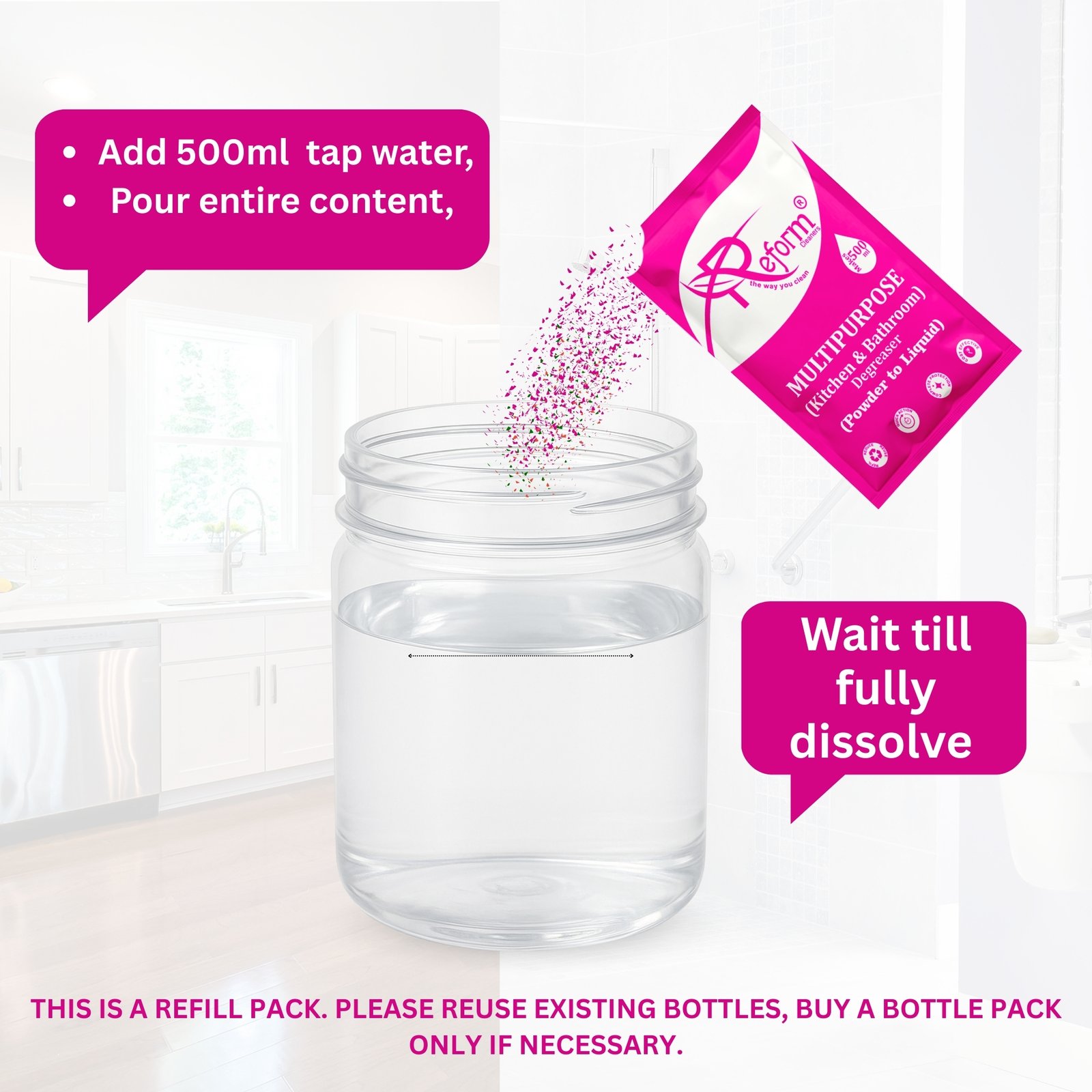 Reform introduces the innovative Floor Cleaner (Powder to Liquid) - Pack of 2 With Forever Bottle