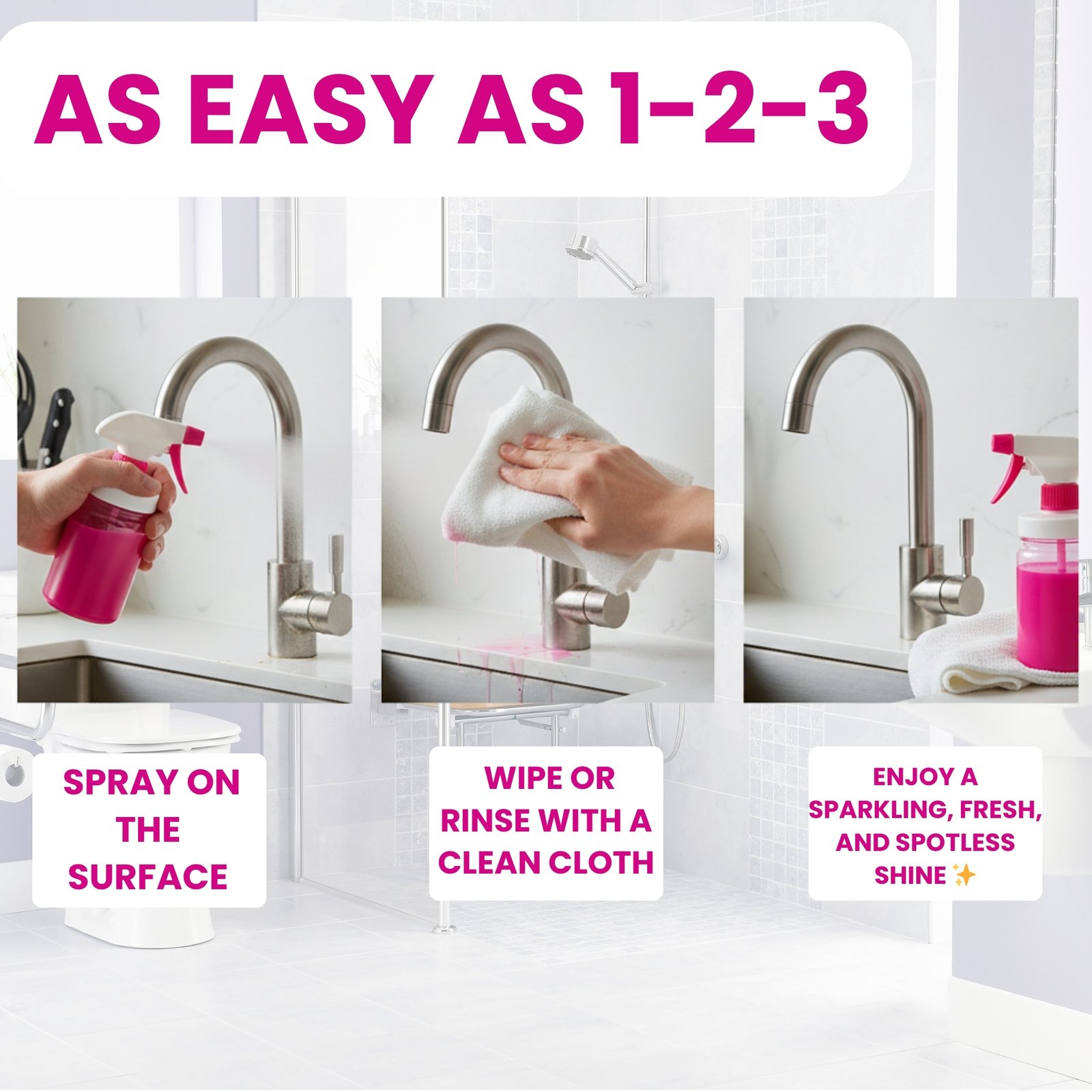 Leaves surfaces streak-free, spotless, and hygienic.