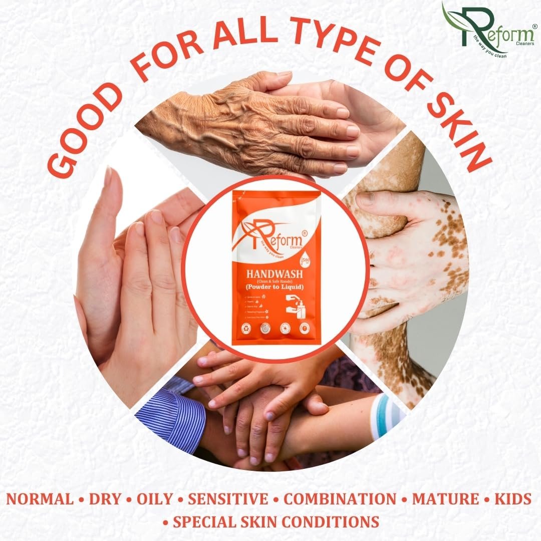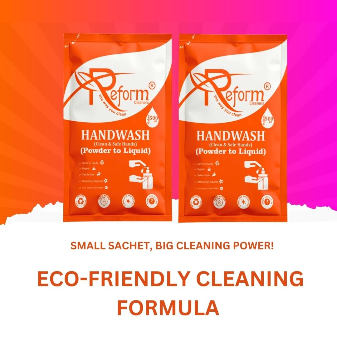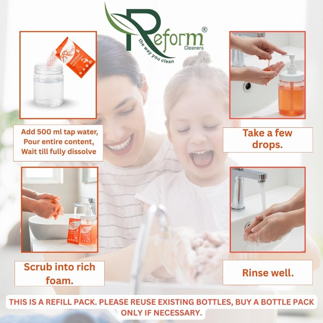 Reform Cleaners – Handwash Concentrate (Powder to Liquid) | Pack of 6 Refill Pouches | Space-Saving, Cost-Effective, Easy-to-Carry | Each Pouch Makes 500ml (Total 3 Liters)