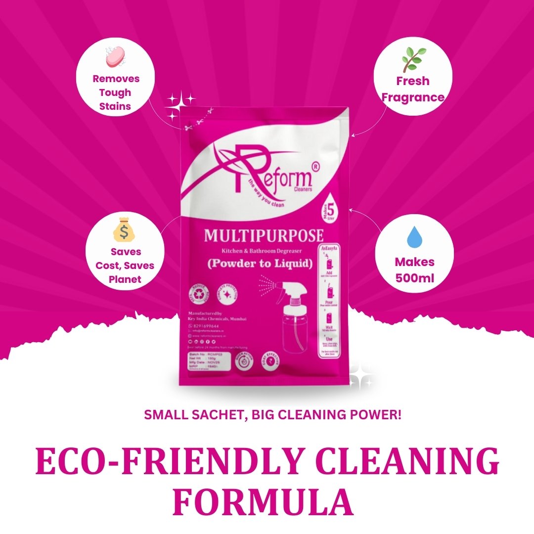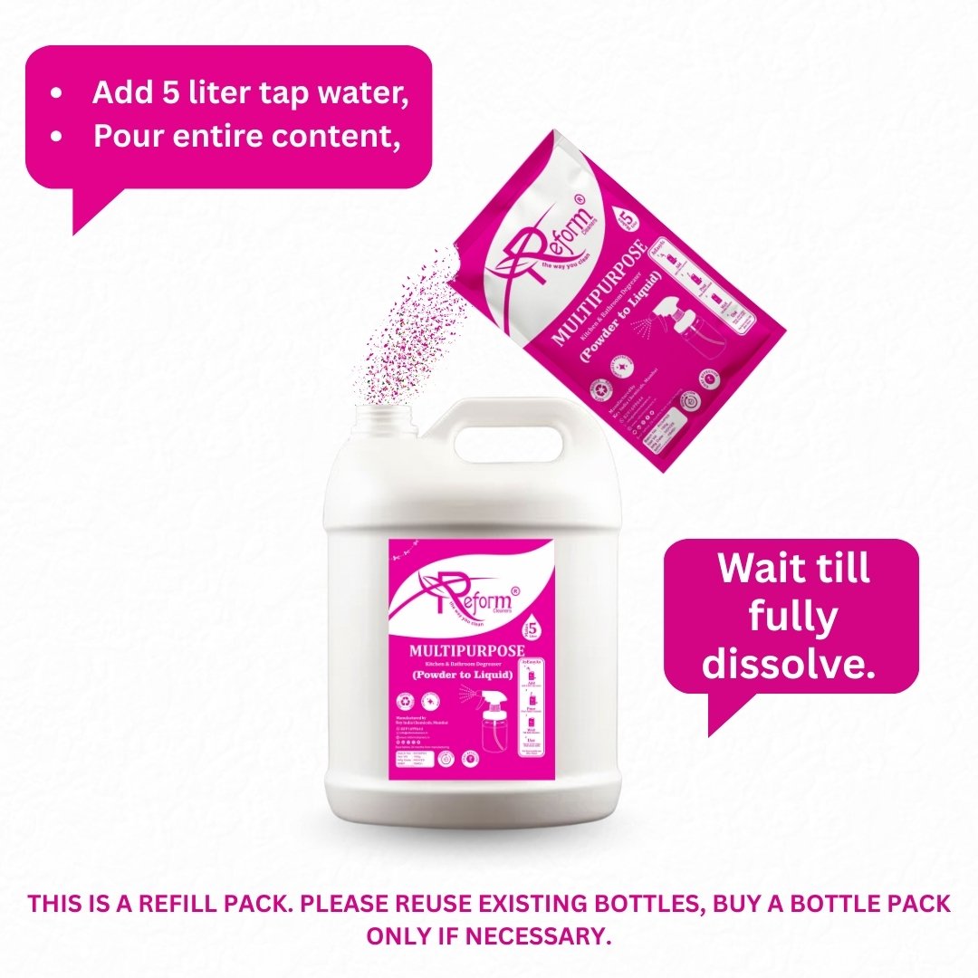 Reform Cleaners – Multipurpose Kitchen & Bathroom Degreaser (Powder to Liquid) | Heavy-Duty Industrial Concentrate | Space-Saving 5L Pouch for Commercial Cleaning (Makes 5 Litres)