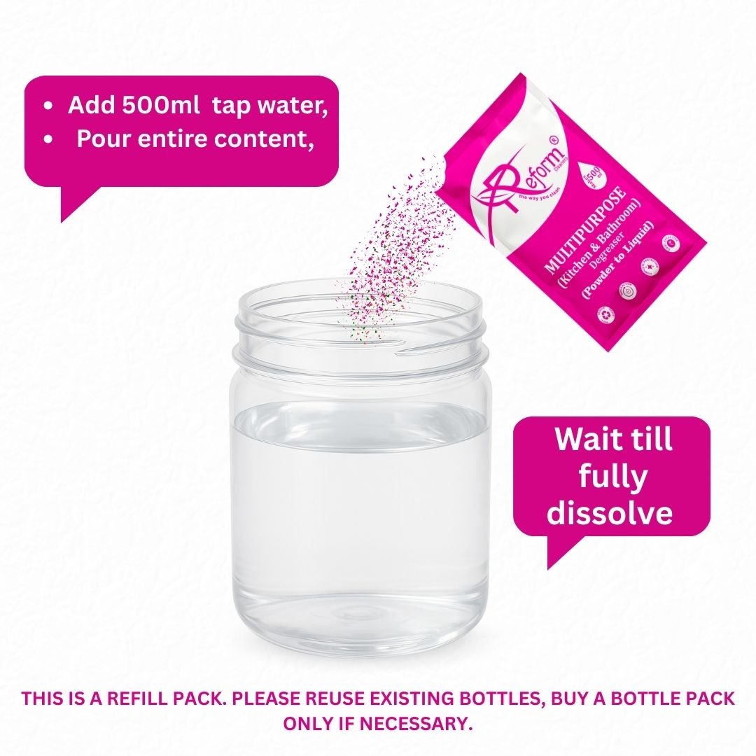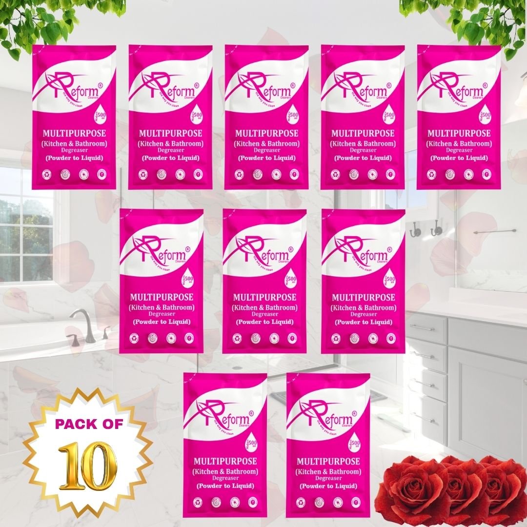 Reform Cleaners – Multipurpose Kitchen & Bathroom Degreaser (Powder to Liquid) | Pack of 10 Refill Pouches (Makes 5 Liters) | Space-Saving, Non-Toxic, Cost-Effective Cleaning Solution