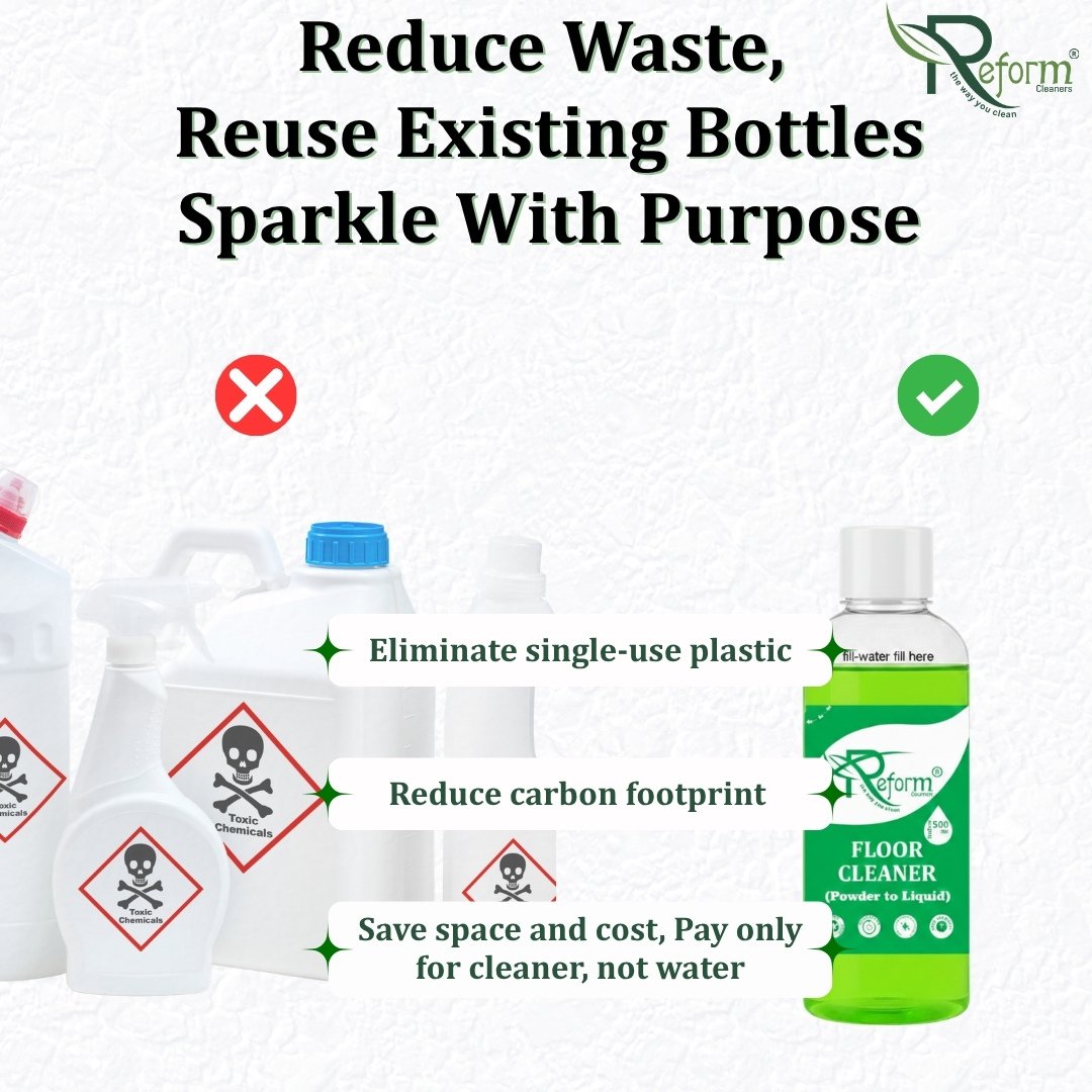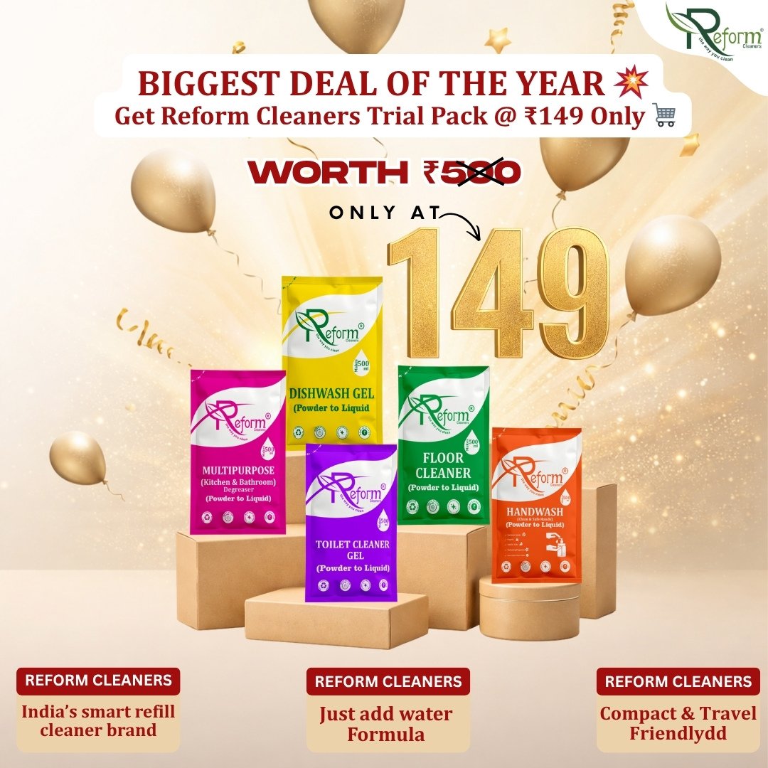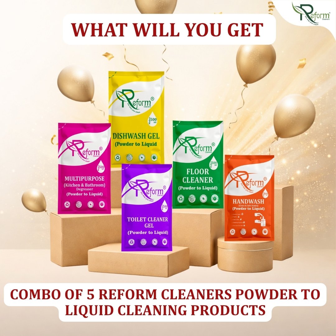 Reform Cleaners Trial Pack – 5-in-1 Powder to Liquid Cleaning Combo | Why Pay for Water? | Eco-Friendly, Non-Toxic Multi-Surface Cleaners | Worth ₹500 Only at ₹149 /-