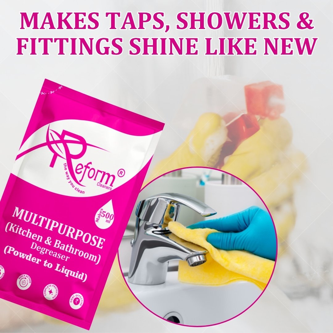 Each sachet transforms into up to 500ml of effective cleaning solution, helping you reduce plastic waste while saving money. Whether it’s tough grease in the kitchen, stubborn stains in the bathroom, or daily floor cleaning, Reform Cleaners delivers powerful results without harmful chemicals.