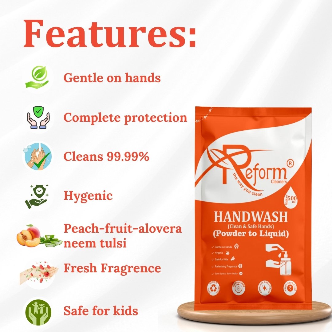 Reform Cleaners Handwash (Powder to Liquid) Pack of 2 With Forever Bottle – Makes 1 Litre 500ml Each | Gentle, Non-Drying & Eco-Friendly Refill | Space-Saving, Cost-Effective Pouch