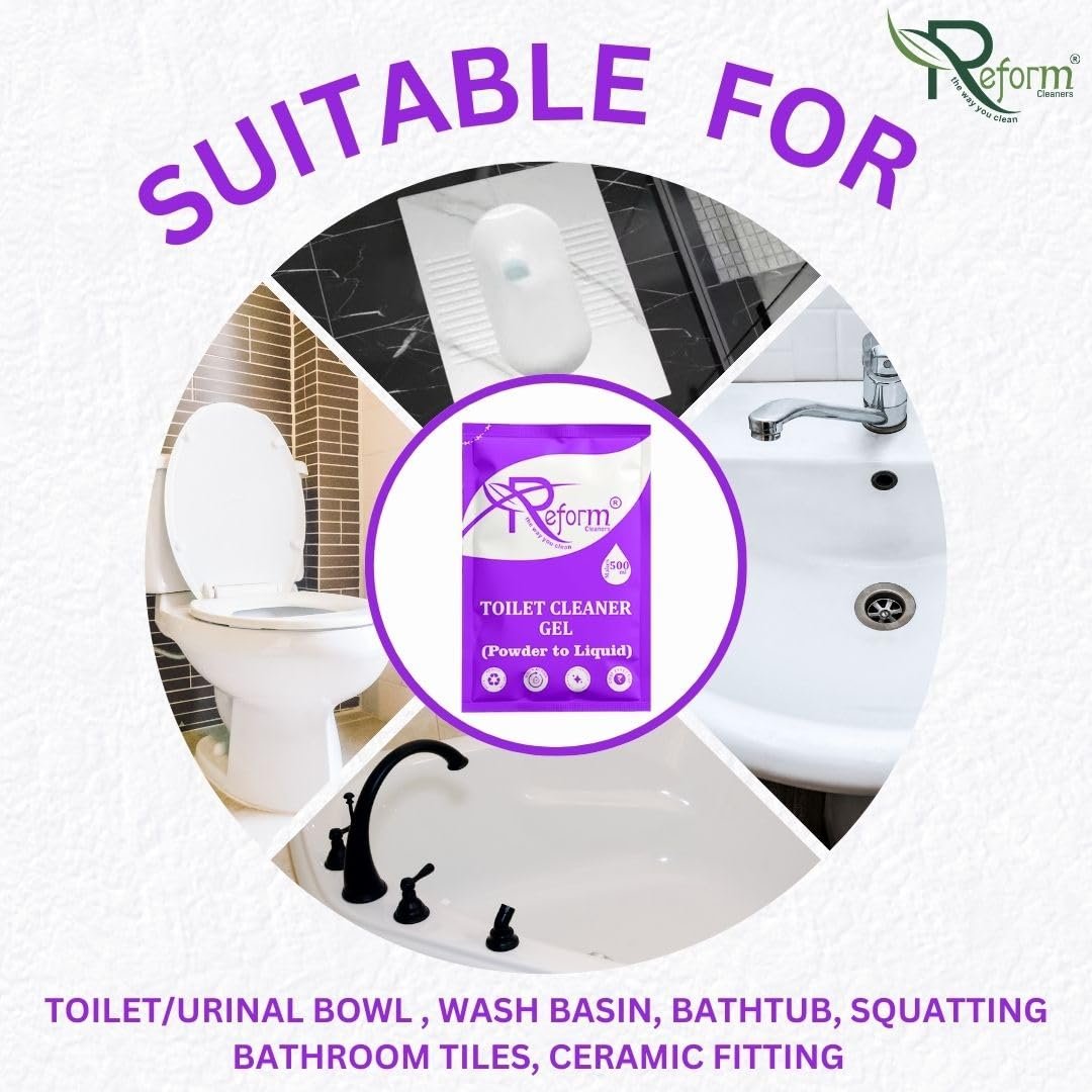 Reform Cleaners Toilet Cleaner Gel (Powder to Liquid) | Pack of 6 Refill Pouches (Makes 3 Liters) | Eco-Friendly Bathroom Cleaner | Removes Tough Stains, Limescale & Odor | Vegan, Non-Toxic, Space-Saving-Easy To Carry.