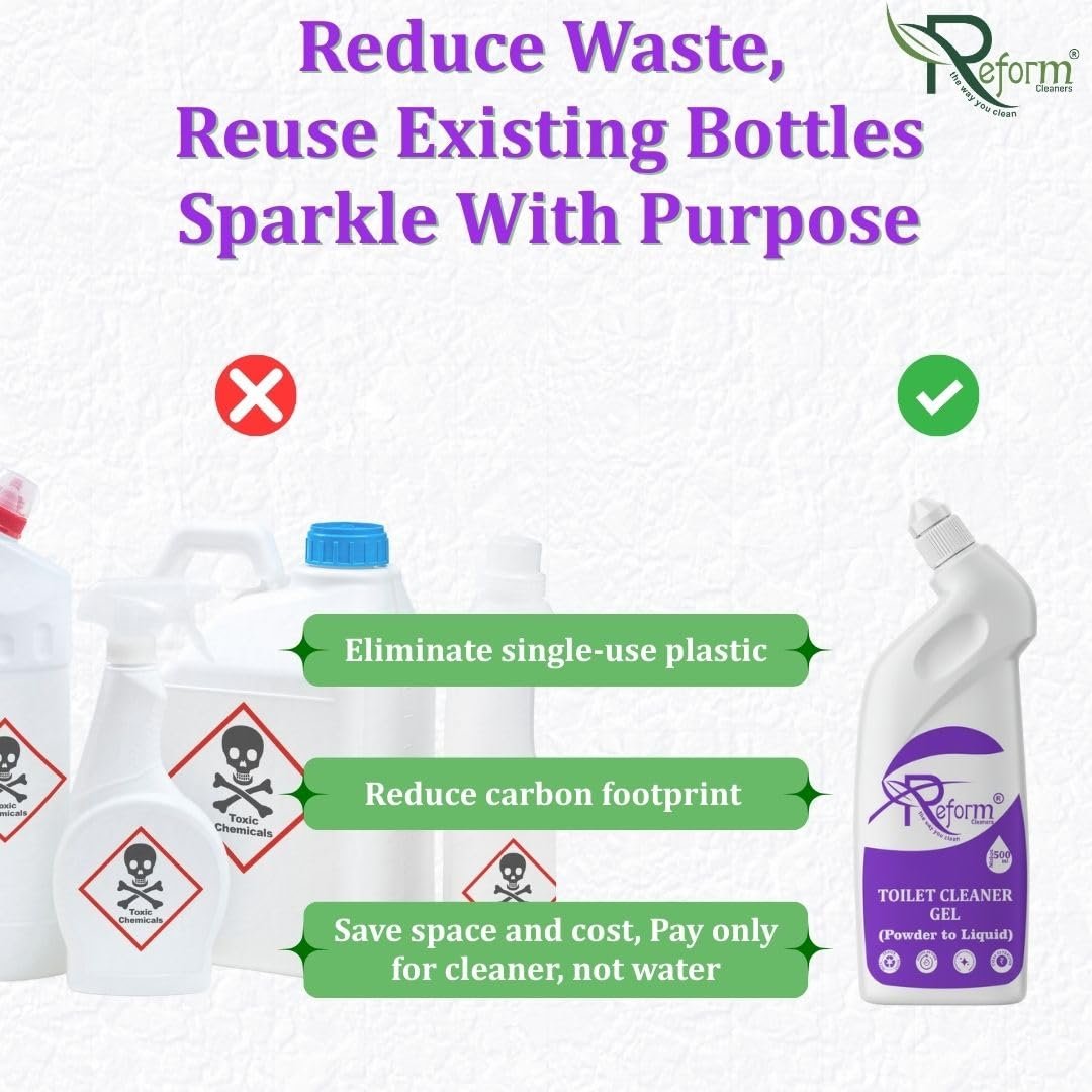 Why Choose Reform Toilet Cleaner Gel (Powder to Liquid): Pack of 2 With Forever Bottle
